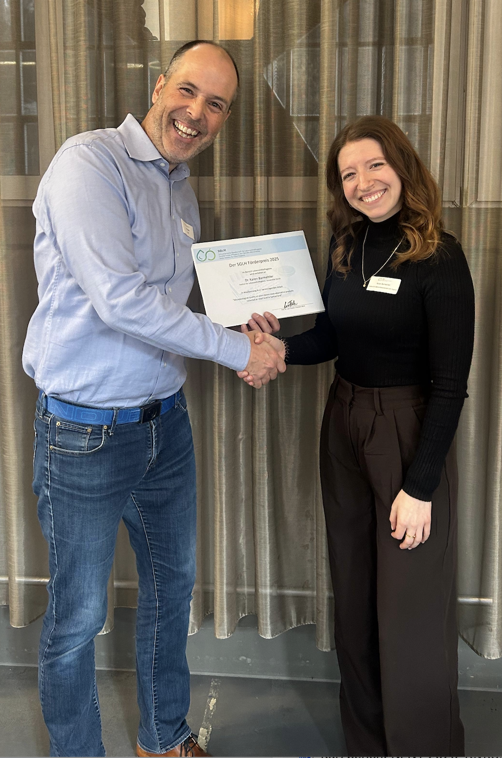 Erfolgsmeldung aus dem Institut für Lebensmittelsicherheit und -hygieneKaren Barmettler, Postdoktorandin am Institut für Lebensmittelsicherheit und -hygiene, wurde an der Jahresversammlung der Schweizerischen Gesellschaft für Lebensmittelhygiene (SGLH) mit dem SGLH Förderpreis ausgezeichnet.